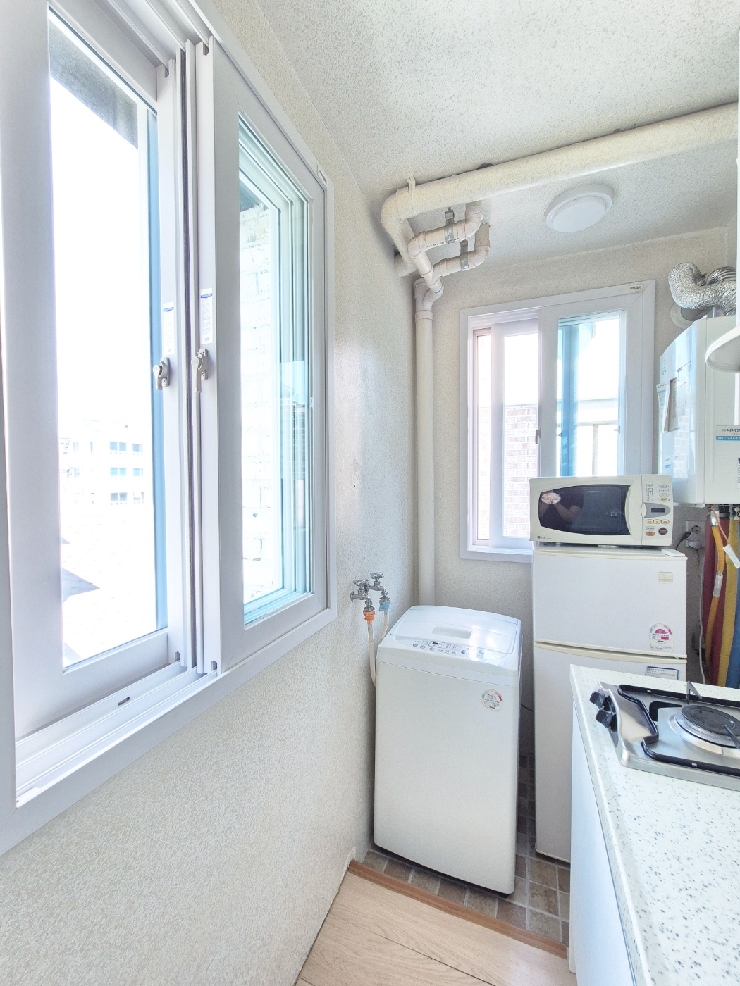 ◑ 주방도 작지않고 창문이 2개 있어 환기잘됩니다