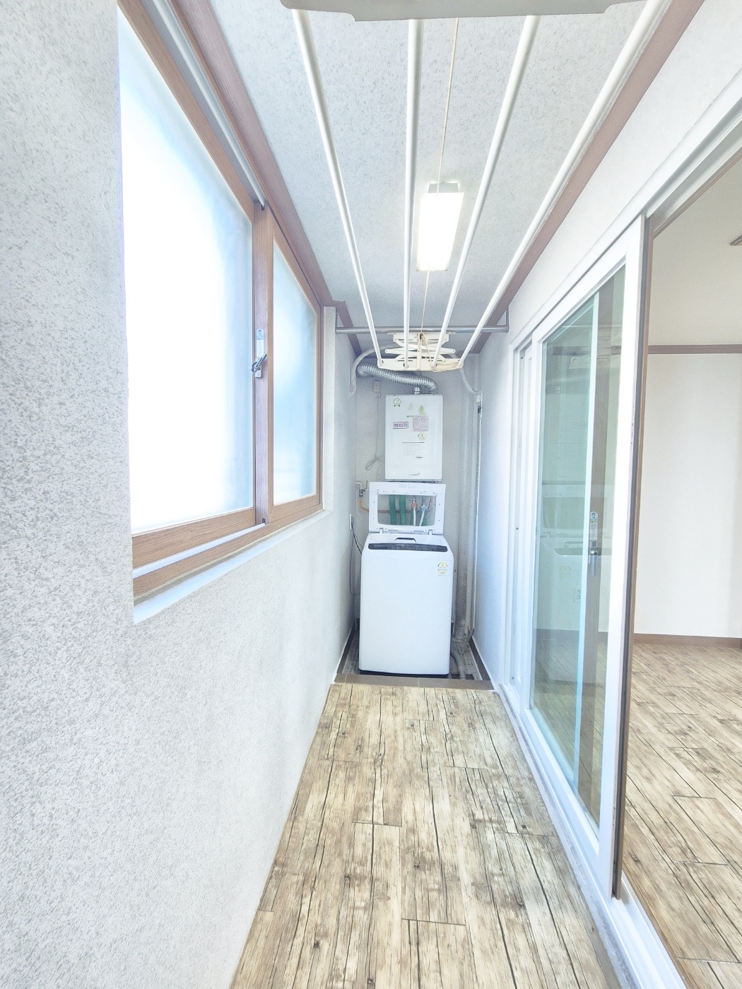 ○ 베란다 세탁기 역류하지못하도록 텀이 있어요