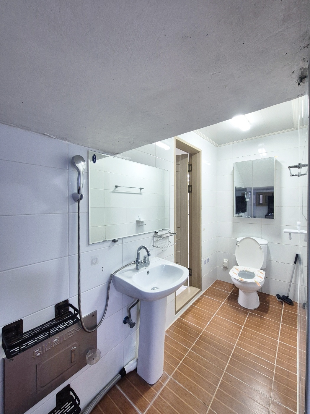 ◑ 화장실 길게 일자형이라 세탁기 있고 그안에 창고처럼 공간있어요